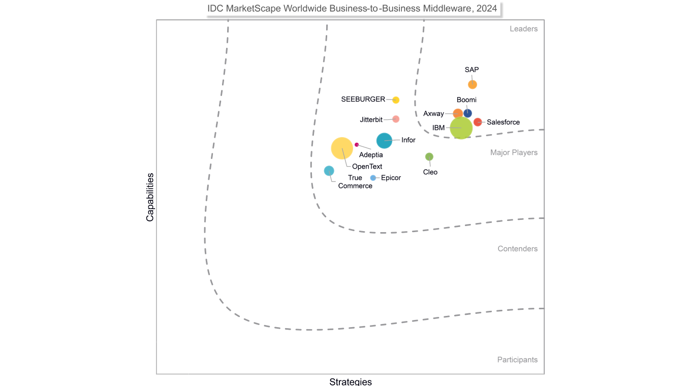 Axway has been named as a Leader in the IDC MarketScape: Worldwide Business-to-Business Middleware 2024 Vendor Assessment.