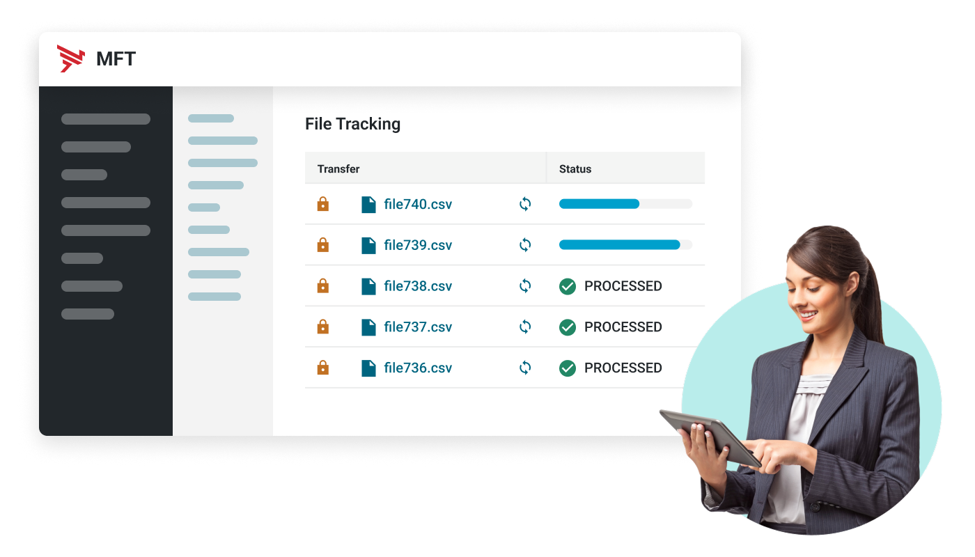 Because you can manage all your critical data transfers across the enterprise from a single pane of glass, MFT gives you complete visibility and control into where data goes. MFT is more reliable, secure, and easier to manage than protocols like FTP or HTTP, making it the preferred solution for data transfer.